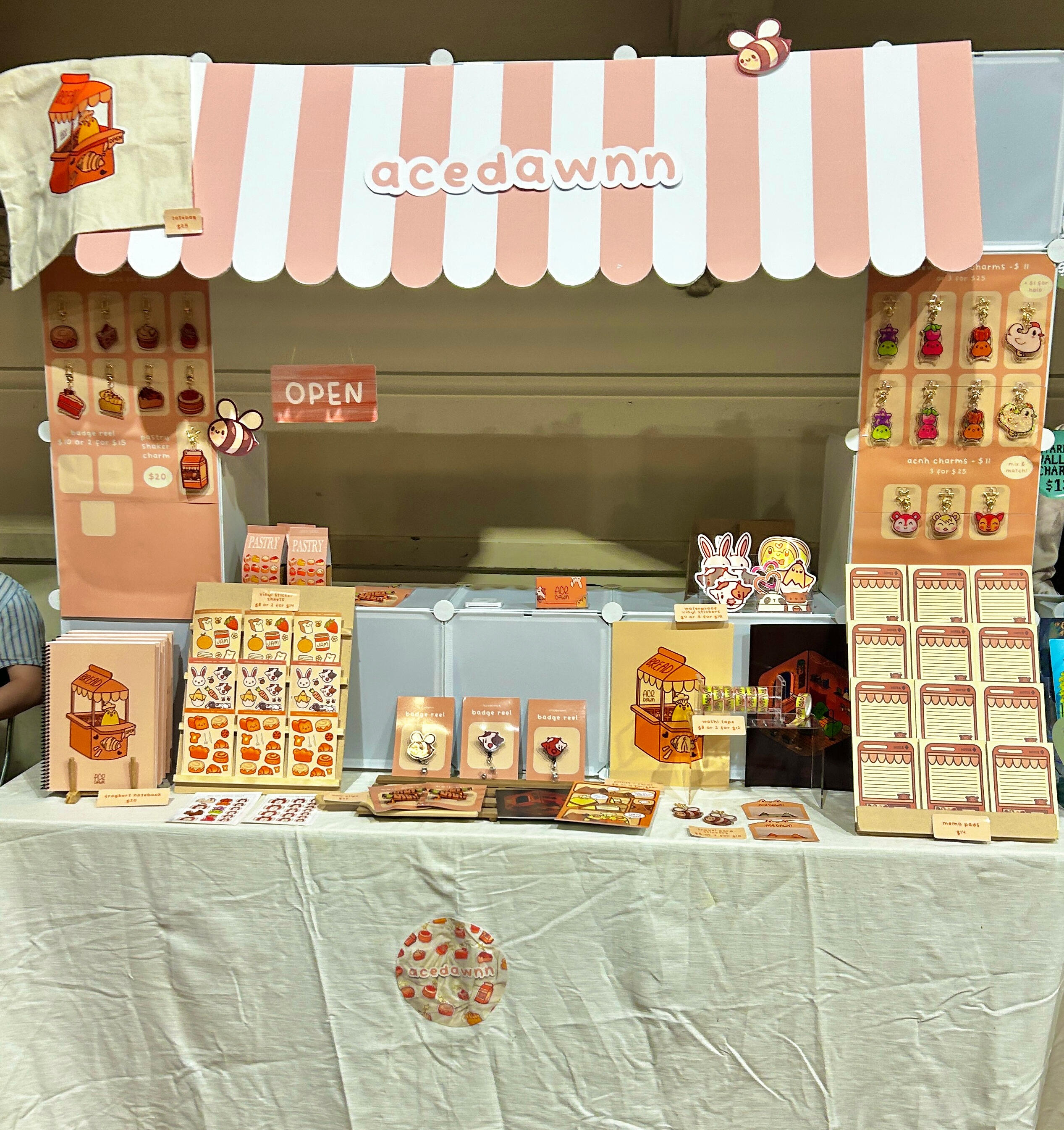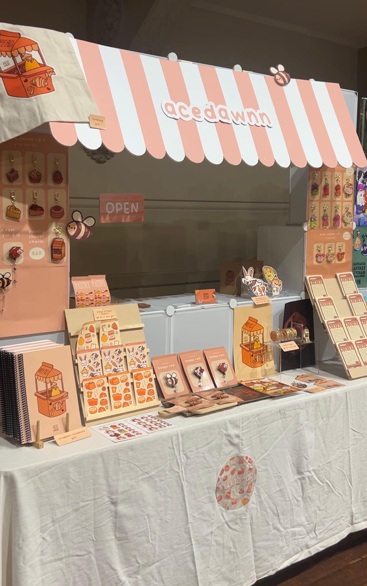 Ace Dawn is a designer, illustrator and maker of cosy art and stationery, based in Kaurna Yerta.A Bachelor of Design (Illustration and Animation) graduate, they have been exhibiting and stalling at markets and conventions over the past two years.Ace's original art is warm and cosy, featuring cute creatures, homely environments and autumnal tones.Their drive for creating comes from their desire to create art that feels like Home; for people to pick up their art and feel relaxed and safe.The main fandoms and franchises they draw fanart for are Stardew Valley, Animal Crossing New Horizons and Dungeons and Dragons.
